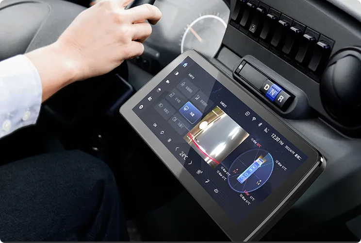 X12是基于Linux系统的12.3寸可触摸智能中控屏。具备4G通信、GPS/北斗双模定位、Wifi、蓝牙通信功能。集成司机灯、空调、路牌等车辆控制按钮:拥有4路AHD接口,集成显示倒车、中门、360环视、行车记录等监控画面并支持实时查看及回放,自定义OSD水印等功能;通过CAN总线可实时显示车辆运行状态、漏气传感器、胎压传感器等设备信息:预留485.232接口。